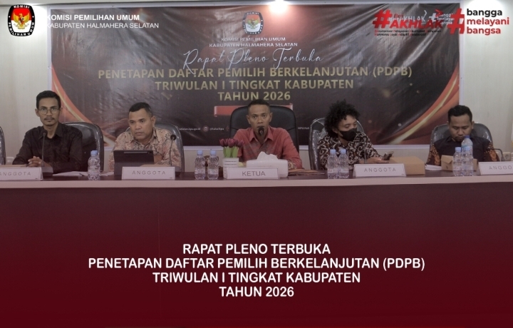 Katasatu – Komisi Pemilihan Umum (KPU) Kabupaten Halmahera Selatan (Halsel) telah melaksanakan Rapat Pleno Terbuka Penetapan Daftar Pemilih Berkelanjutan (PDPB) untuk periode Triwulan I Tahun 2026, pada Kamis (2/4/2026).
